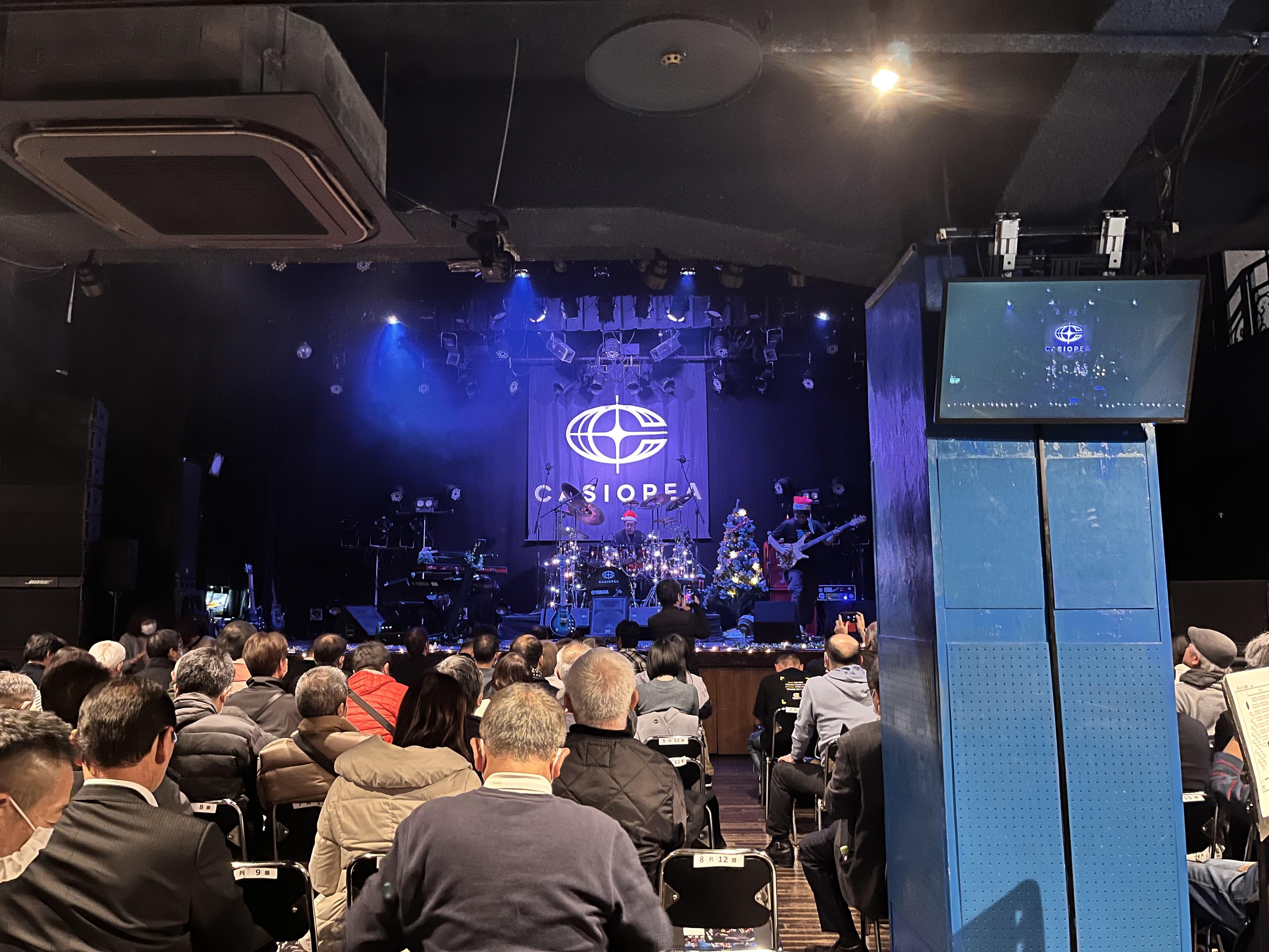 안녕하세요. 밑에 분은 티스퀘어 공연을 다녀오셨네요 ㅋㅋ 저는 카시오페아 작년 겨울 투어 중 나고야 공연을 다녀와서 후기 남겨봅니다. 공연장은 The Bottom Line 이었구요 예매를 좀 늦게해서 시야제한석에서 봤습니다. 근데 단차가 있는 열의 앞 줄이어서 오른쪽이 약간 가려진 것만 빼면 오히려 잘 보이는 자리였어요. 관객 연령층은 카츠시카 라이브 영상을 봤어서 대충 비슷할 거라고 예상했었고 그래도 3,40대 정도 되는 분들도 있는 것 같아서 다행이었어요. 크리스마스 직전이라 그런지 크리스마스 분위기로 꾸며진 무대였습니다. 참고로 앵콜 때는 모두 산타모자를 쓰고 나오셨답니다 ㅋㅋ